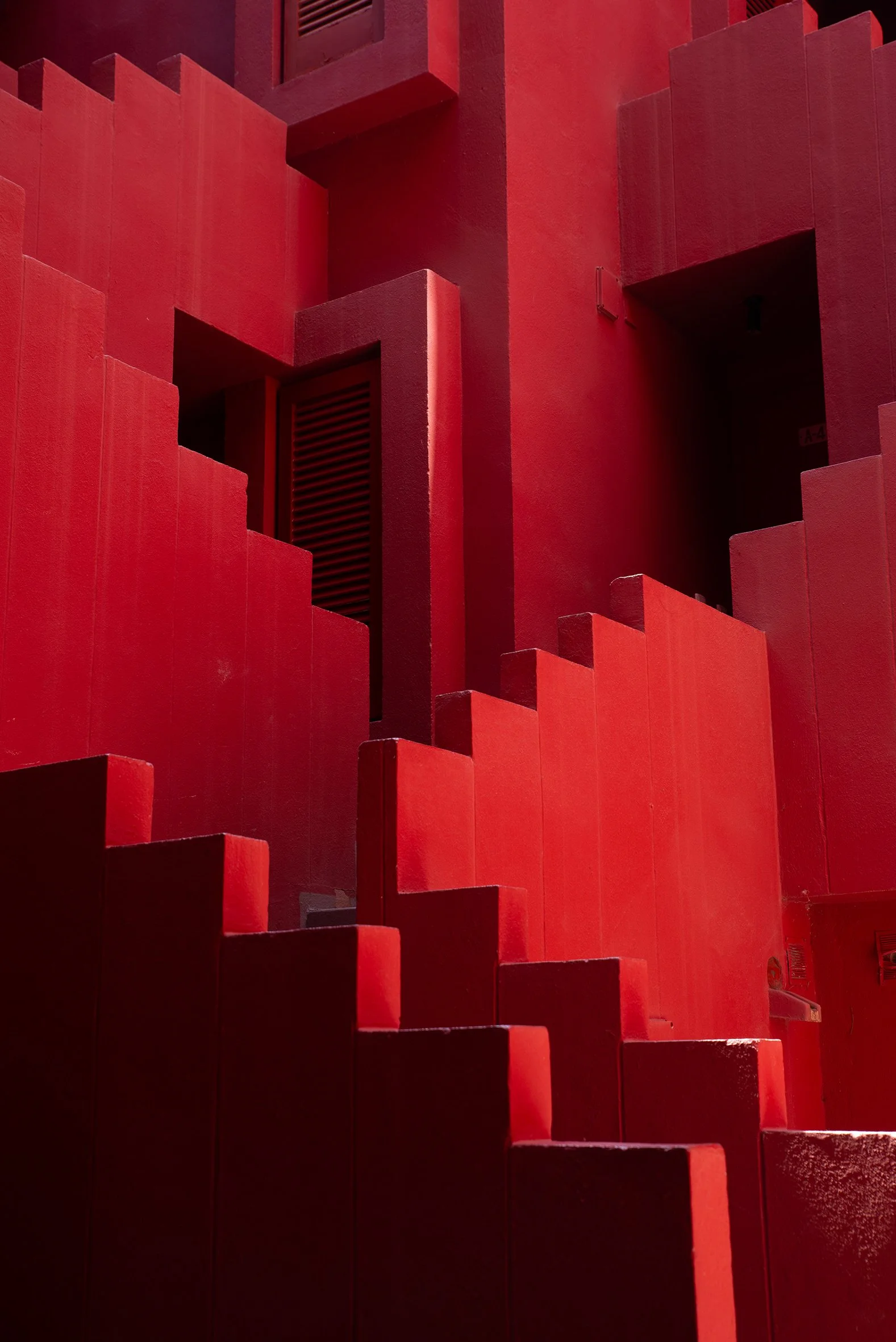What can I say about La Muralla Roja ? Iconic. That’s it … it was a lifelong dream to go and see Ricardo Bofill’s masterpiece in Spain. I spent three days staying there, swimming in the glorious pool and taking photographs. Having just arrived from the medina of Tangier, that sense of unconcerned dislocation felt familiar to me. I was happy to wander up and down the stairs, turning a corner and finding myself in the blue area of the building or the deep red area, without ever trying too hard to orientate myself. I constantly found myself not quite where I was trying to get to, but it didn’t matter: within these walls the journey was definitely the destination.